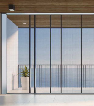 Les moustiquaires de la famille ROLLER, spécialement conçues pour les portes, sont réalisés avec une toile lisse et transparente, permettant une entrée optimale de lumière naturelle qui crée une ambiance lumineuse à l’intérieur.